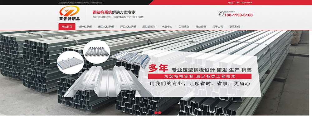 贊:159無錫亞普特鋼品有限公司是國內大型的樓承板加工基地之一。主要生產:樓承板, 鋼承板, 壓型鋼板, 彩鋼板, 閉口樓承板, 開口樓承板, 縮口樓承板,止水鋼板價格優惠及相關的鋼結構輔材。本著對中國鋼結構事業的熱誠,積*開拓,敢為人先,不斷提高生產技術和產品服務水平,為用戶提供物美價廉的產品。